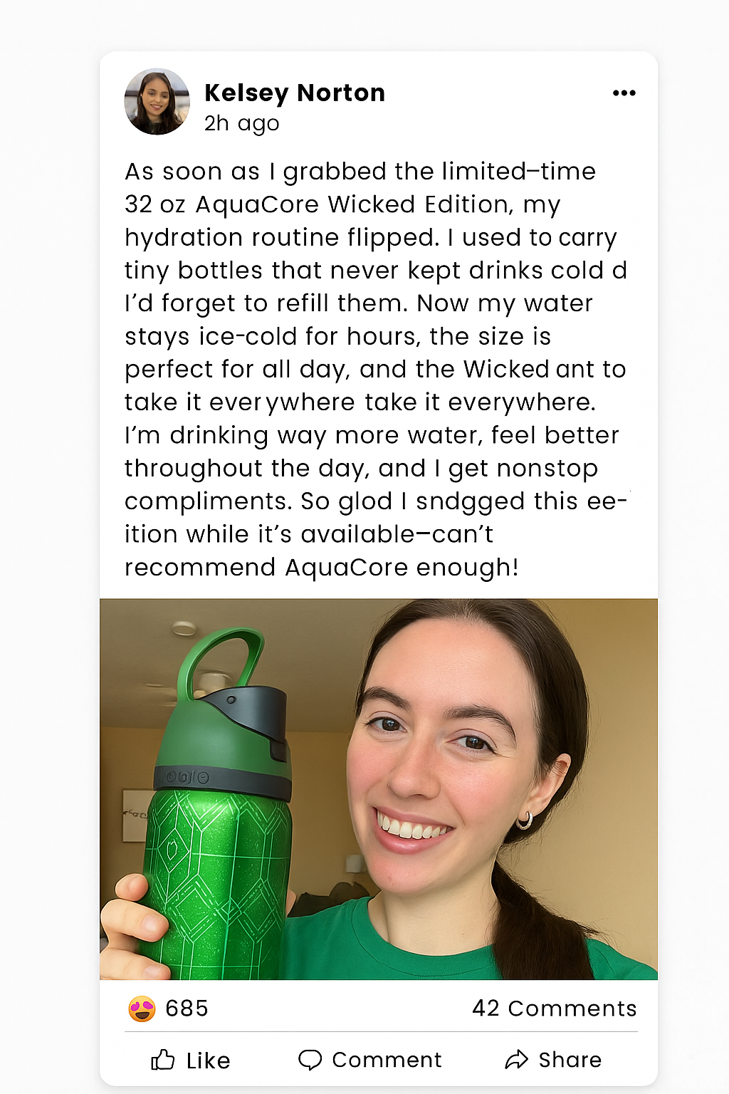 AquaCore’s 32-oz stainless steel bottle delivers all-day hydration without hassle or spills. Double-wall vacuum insulation keeps drinks ice-cold for 24 hours or hot for 12, while the leak-proof, sweat-free design protects bags and desktops. Built from kitchen-grade steel with BPA-free components, it resists dents, odors, and flavor transfer—so every sip tastes fresh. From workouts to workdays to weekend trips, AquaCore keeps you fueled and focused with effortless, reliable hydration.